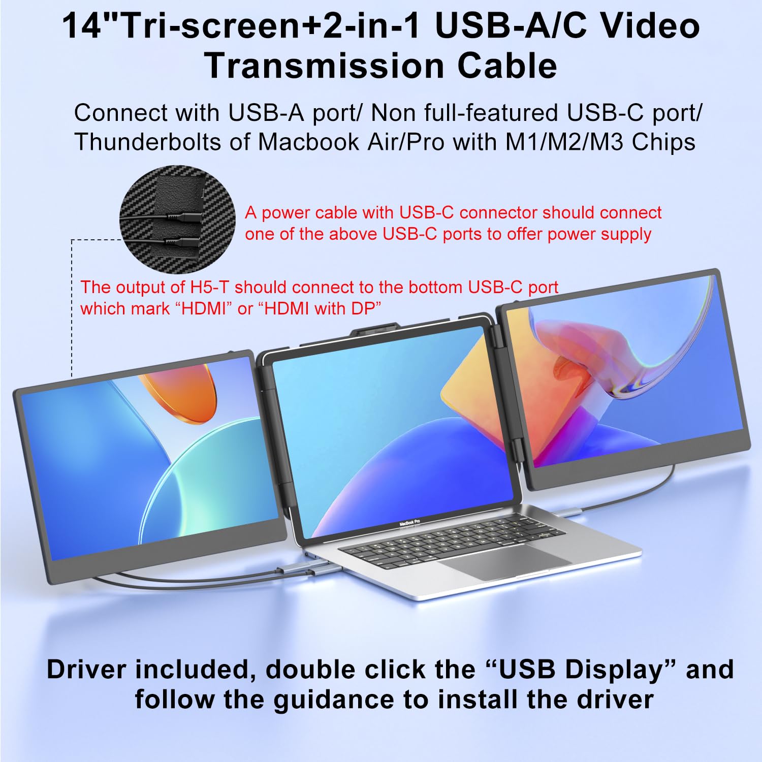 ה-H5-T הוא כבל ייעודי להמרת אות וידאו המאפשר לחבר מחשבים ניידים שאינם תומכים ביציאת וידאו מובנית – כולל דגמי MacBook עם שבבי M1/M2/M3 וכניסות USB-A או USB-C שאינה Full-Featured – למסך חיצוני באיכות גבוהה.